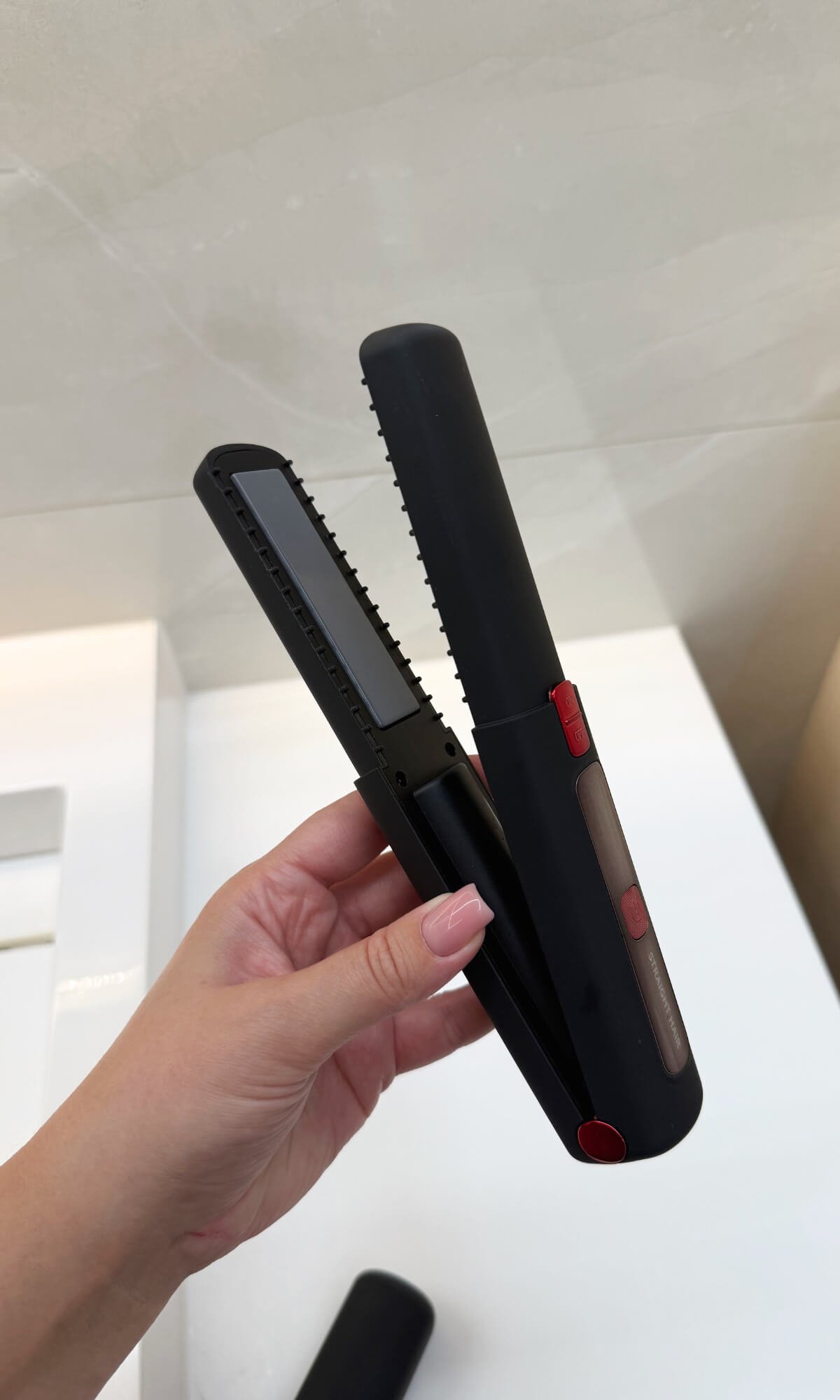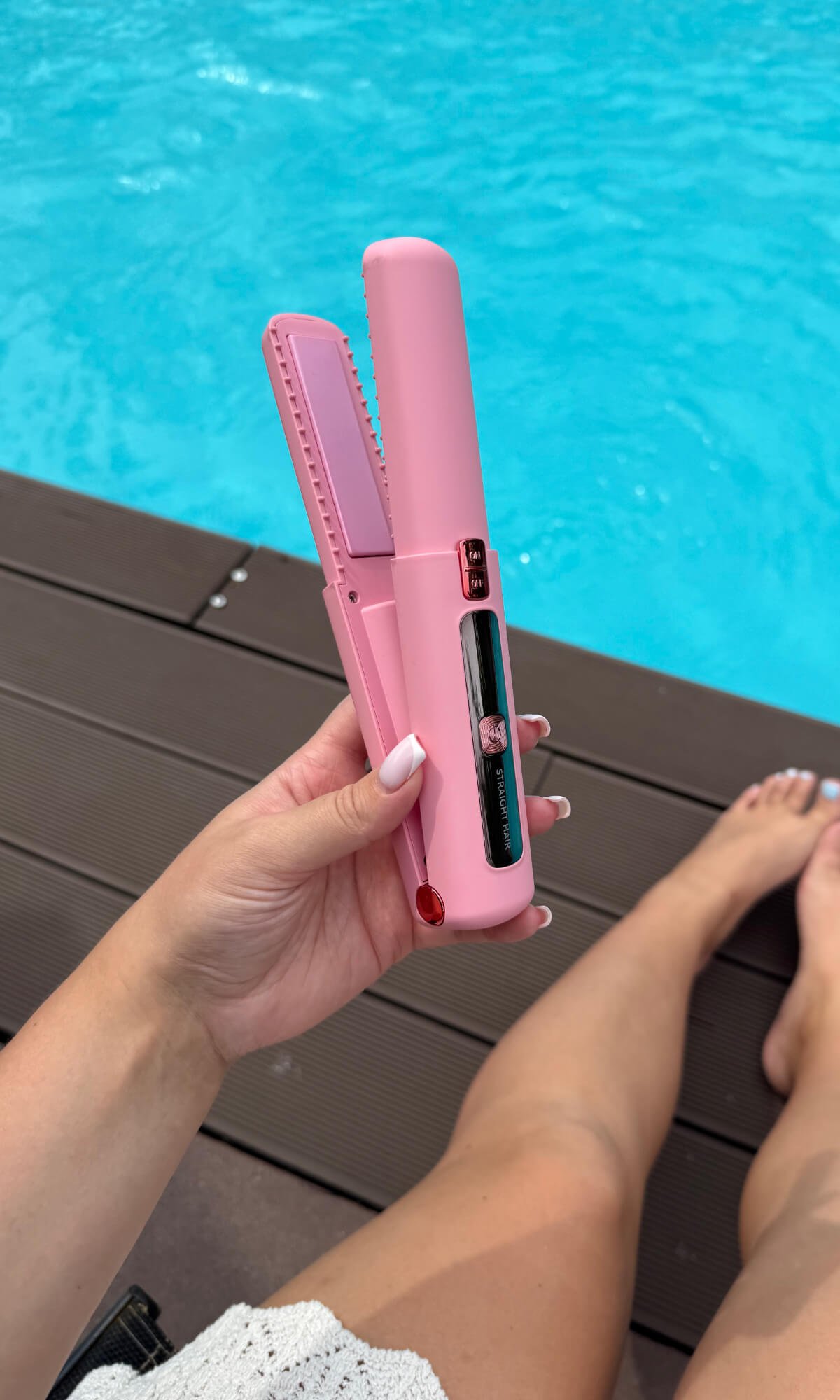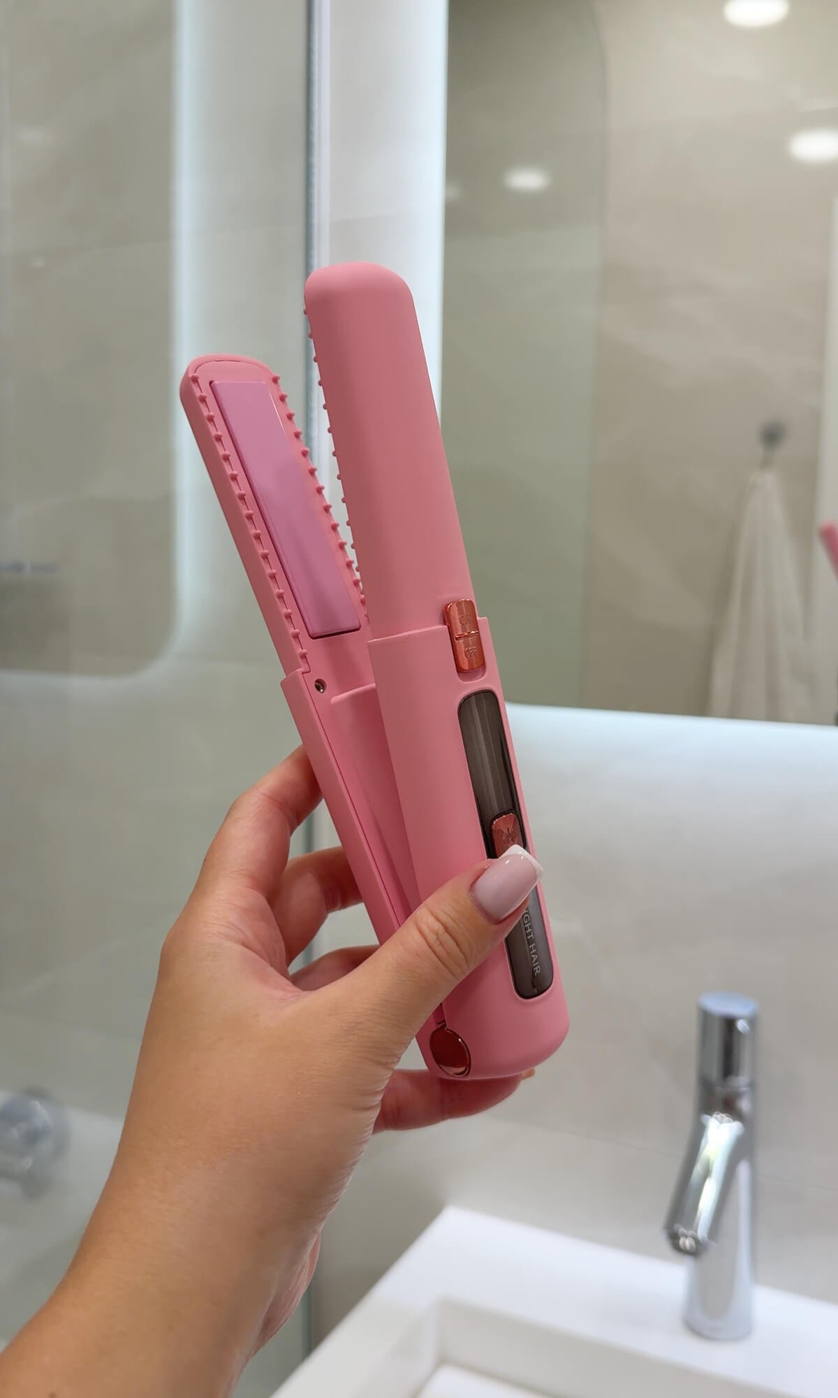 Nie. Prostownica nie włączy się przypadkowo w torebce. Specjalna ochronna pokrywka blokuje przycisk zasilania – nawet jeśli zostanie naciśnięty, gdy pokrywka jest założona. Urządzenie można uruchomić dopiero po jej zdjęciu.